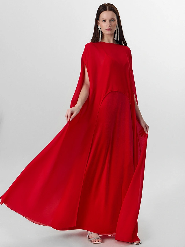Красная туника — эксклюзивная модель для особых случаев. Элегантный А-силуэт и полупрозрачный материал создают романтичный образ, который выгодно подчеркнет вашу красоту, женственность и индивидуальность.