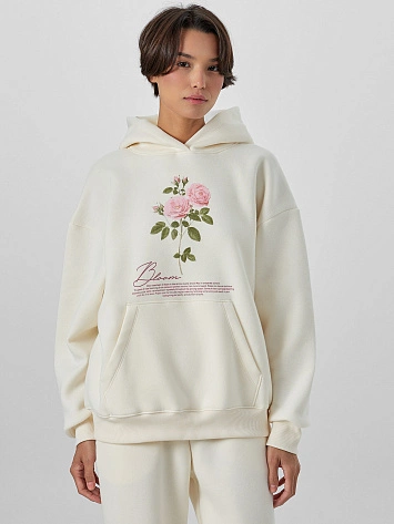 Худи женское молочное с надписью "bloom"