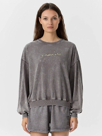 Свитшот женский серый с обработкой эйсид и надписью "no matter what"