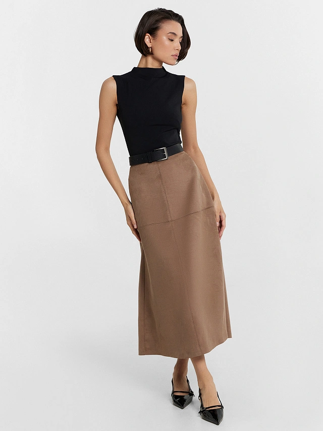 Женская юбка А-силуэта из трикотажного материала с фактурой "под замшу" — это элегантная и стильная модель, которая станет прекрасным выбором для создания утонченных образов на любой случай. Миди-длина подчеркивает женственность и универсальность изделия, а застежка-молния на спинке обеспечивает удобство и практичность. Материал с фактурой "под замшу" придает юбке благородный и изысканный вид, что делает её подходящей как для повседневных, так и для более торжественных случаев. Она легко сочетается с различными элементами гардероба — будь то топы, блузки или футболки, создавая стильные и разнообразные ансамбли. Идеальный вариант для тех, кто ценит качество и современный дизайн. Рекомендуем!