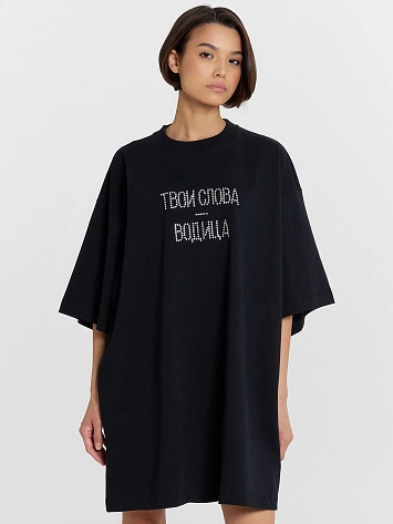 Футболка женская черная с надписью из страз "твои слова - водица"