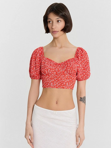 Топ женский красный с цветочным принтом