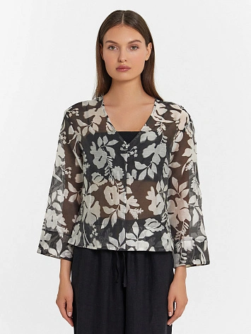 Блузка женская зеленая с цветочным принтом