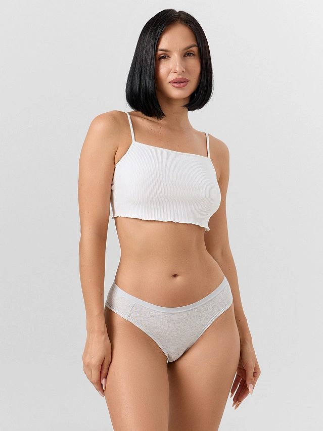 Серые женские трусы-бразилиана из натурального хлопка с добавлением эластана — это идеальный выбор для повседневной носки. Модель с заниженной линией талии обеспечивает комфорт и практически незаметна под облегающей одеждой. Верхний срез оформлен тонкой эластичной тесьмой, которая мягко фиксирует трусики, не оставляя следов и не создавая дискомфорта даже при длительном ношении.